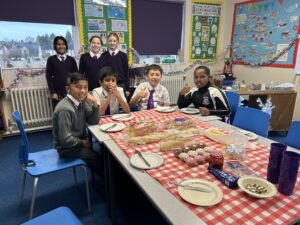 Working in groups, the children created their own French dialogue, writing questions and answers between a waiter and customers. They created orders, an amount for the bill and remembered their ‘mercis’ and ‘s’il vous plaits’ too! After a few rehearsals, they were set to perform.